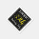 This simple and elegant paper napkin design features a message like "NameHere’s 39th Birthday Party", with the "39th" in fancy yellow-colored text, within a black-colored square area featuring a simple border outline. The name can be personalized. Napkins like these could perhaps be used at a birthday party for somebody who is celebrating their thirty ninth birthday. [~Z0000150]