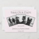 Announce your wedding date to friends and family with this modern Simple 3 Photo Collage Save the Date. Announcement design features three photo placements of the happy couple, clean text design and an elegant diamond pattern on the back.