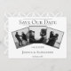 Announce your wedding date to friends and family with this modern Simple 3 Photo Collage Save the Date. Announcement design features three photo placements of the happy couple, clean text design and an elegant diamond pattern on the back.