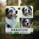 Discover the exquisite intricacy of our modern pet ornament with a unique 3 photo collage template. Showcase your beloved pet in style with our customizable white overlay block boasting your pet's name. An ornament that transcends the conventional, offering a perfect blend of personal touch and modern design. A must-have for every pet lover and a splendid gift for friends and family.