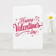 This greeting card features the words “Happy Valentine’s Day” stretched across a bright white background in flowing, cursive-style red lettering. The message sits right in the center, and the red color makes it the first thing you notice. Small hearts are sprinkled around the text like little accents, with some filled in red and others in a lighter pink or just outlined. A tiny heart replaces the dot over the “i” in “Valentine’s,” which adds a sweet detail without distracting from the main message. There’s also a larger open heart near the end of the word “Happy,” helping the design feel extra loving. A faint shadow under the letters and hearts makes everything look slightly raised off the page. It feels meaningful because it keeps things simple and focused on saying what you mean, whether it’s for a partner, a close friend, or someone you care about 🥰❤️. Hope it helps you share your Valentine’s Day feelings in a kind, heartfelt way.