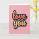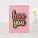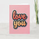 This greeting card centers on the words “Love You” against a soft pastel pink background. “Love” sits on top in rounded letters that fade from coral to a deeper orange, and “You” is just below it in warm golden yellow. The letters look shiny, with light highlights that make them feel a bit like glossy candy. A dark charcoal outline hugs each letter, and a wider light gray outline sits outside that, giving the words a sticker-like look. A faint shadow underneath makes the whole phrase seem slightly lifted off the page. It feels simple but caring, like you’re saying something direct and true without needing extra decoration 🥰. It’s a sweet way to show you care, whether it’s for a partner, a close friend, or someone you miss ❤️, and it’s perfect for sharing Valentine’s Day feelings with someone you love.