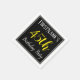 This simple and elegant paper napkin design features a message like "FirstName’s 45th Birthday Party", with the "45th" in fancy yellow-colored text, within a black-colored square area featuring a simple border outline. A custom name can be used. Napkins like these could perhaps be used at a birthday party for somebody who is celebrating their forty fifth birthday. [~Z0000150]