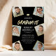 Modern real foil graduation party invitations featuring a stylish black background that can be changed to any color, 6 photos of the graduate, and a simple text template that is easy to personalize.