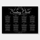 This simple 8 table seating chart combines classic elegance with modern simplicity. The design features pale silver gray text with a black background and a silver vintage floral filigree border. Has seating assignments for up to 80 guests with 10 seats per table. The names of the couple and wedding date are displayed at the bottom. Wonderful way to add beauty and style to your wedding reception while making it easy for your guests to find their seats.