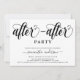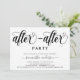 Modern , trendy, simple divorce party invitation features '' after after party'' calligraphy script in handwritten lettering and party details. Back of the card is in solid black color.