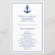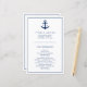 Nautical wedding program featuring a navy blue anchor with your monogram on either side, over a white background. The front has your ceremony events and the backside has your wedding party. A simple yet elegant design that is perfect for a beach themed celebration in the summer. These cheap wedding programs are printed on sheets of paper for a budget friendly option.