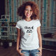 This chic black and white shirt features trendy modern script typography that says "class of 2023". There is also an elegant little heart with a faux rose gold look.