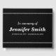 This subdued funeral or memorial guestbook features the message "In memory of", and the personalized name and birth/death dates of the individual who has passed on. It could be used to record sympathetic wishes for the family and friends of somebody who has recently passed away.