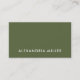 This business card design is the epitome of sophistication and elegance. The front of the card features your name in a simple and stylish white font, positioned in the lower third of the card against a solid olive green background. The back of the card features your title and contact information, also in simple white font on an olive green background. The result is a clean and modern design that exudes confidence and professionalism.