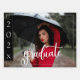 Modern graduation template with a photo overlay in a simple unisex palette. The design features a chic hand-lettered brush script “graduate” typography overlay and picture along with the grad’s name, school, and graduation year. #bound