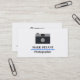 A business card with white background and a classic camera icon as design. Black text for personalisation of details. A simple, professional and modern business card for photographers or businesses dealing with camera equipment.