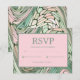 This gorgeous and unique Bat Mitzvah RSVP matches the Invitation perfectly. It features a striking abstract design with green and pink coloration throughout. It has an artistic yet modern flair that will surely set the stage to create a unique and beautiful event.