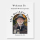 This unique 90th Birthday Celebration welcome sign features a wonderful arch shaped photo template to personalize with your honoree's photo. The custom text template with text that runs along the outer edge of the photo has lovely modern appeal. Shown here in white, this sign is also available in tan/beige or black. Personalize the text template with your info. This sign is suitable for any age!