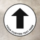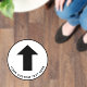 Simple black and white directional floor decal sign to guide your customers or visitors featuring an arrow and your text in clear, easy to read typography.