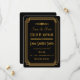 These save the dates feature a black and gold color palette, a geometric frame, and other stylistic details all inspired by Art Deco and the roaring twenties. You can customize the sample text fields to your liking.
