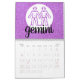 Each month features a simple astrology sun sign symbol from the zodiac. The month's minimalist faux glitter background closely resembles the birthstone gemstone color. A full birthstone chart is located on the back of the calendar.