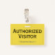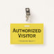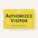 This simple badge design features the message "Authorized Visitor", and a customizable company name or other custom message. It also features a single-line border with rounded corners. A badge like this could maybe be used to show that somebody at a business or workplace is an authorized guest or visitor. [~Z0000307]