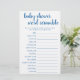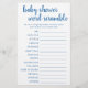 Unscramble the baby words! Simple baby shower or gender reveal word scramble party game (with answers below) featuring a fun, casual hand-lettered script. The classic design includes a modern handlettered quote typography overlay. For other colors or matching products, please visit the JustFharryn Zazzle store, or contact the designer, c/o Fharryn@yahoo.com All rights reserved. #bohochic #zazzlemade