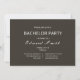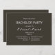 Simple bachelor party invitation for the groom, horizontal layout. Solid chalkboard grey with white text.