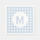 Simple Basic Faded Denim Blue Gingham Monogram Paper Napkins