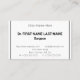 This simple business card design features a professional’s name, a medical clinic name, a job role title, and contact details that can be customized. Business cards such as these might be used by a professional such as a primary care physician, a family physician, or a surgeon.