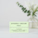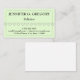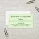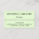 This basic, simple, and customizable business card design features a pale green background, a single-line border with rounded corners, and a decorative row of heart shapes. It could be used by a professional such as a solicitor, patent agent, advocate or paralegal. The name, profession and contact details can be personalized.