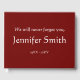 This basic funeral or memorial service guestbook features the message "We will never forget you,", and the customized name and birth/death dates of the individual who has passed on. It could be used to record fond memories of somebody who has recently passed on.