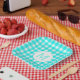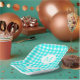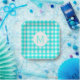 Make an impression with this classic checkered gingham pattern in bright turquoise blue with a white circular place to add your monogram in a matching turquoise block font! Replace the initial with your own...choose your font or remove the monogram and add your own design. Perfect for baby showers, weddings, anniversaries, reunions and luncheons.