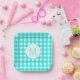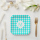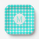 Simple Basic Turquoise Gingham Monogram Paper Plates