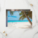 Tropical blue waters and white sand with palm tree wedding save the date for your destination beach wedding. This save the date can be used for the location of your choice, simply change the wording on the template to fit your needs. Customize with your wedding details and add your photo to the back. If you have a vertical photo you would like to add instead of a horizontal one as shown here, contact me - I would be happy to help.