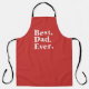Great color and even though I ordered the kid size, it covers well enough to use during the holidays. I am not a big woman and prefer a shorter apron. I stand 5"6" and the length of the garment goes to mid-thigh. The tie straps fit well at my waist and even though there is no neck strap adjustment, the opening is plenty big enough. I am happy with the size and fit. I am sharing my apron with my 10 year old grandson, too! The color is vibrant and looks good, as shown on the website. The stitching looks strong and reinforced. Photographed is front side and back side of the apron, reinforced straps and coloring. My phone camera may not be the best at showing the details.