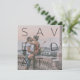 Chic, sophisticated, and bold, this avant garde Simple Black 2 Photo Rose Gold Script Square Wedding Save the Date card features 'Save the Date' in a trendy black typography minimalist layout over a white screened layer that sits atop your square engagement photo. It features the innovative twist of having the word 'the' middle of the design in a diagonal script typography, rendered in faux rose gold. The back of the card features a white photo frame overlay bordering a horizontal / landscape orientation photo, and your names, wedding date and wedding location appear below, also in black text. Copyright Anastasia Designs, 2018.