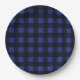 Simple Black and Blue Plaid Pattern Paper Plates