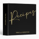 Simple Black and Gold Script Recipe Book Journal 3 Ring Binder