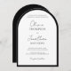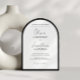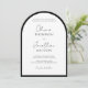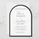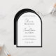 Plain white envelopes are included with paper invitations and will come to fit the invitation size you select. If you don’t need the envelopes, you may choose to not receive them by selecting the dropdown below "Envelopes" and choosing "None." If you’d like to have a design on your envelopes, you can browse all of these available envelopes to find the design that complements your Simple Black And White Border Script Wedding Arch Invitation.