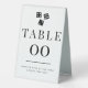 This sturdy, plastic tent style Bunco game table marker is perfect for any additional tables you need beyond the Head Table and match the Bunco Game Night collection. Don't forget to personalize one for each additional table needed including, if needed, the helpful reminder for where players go at the end of the round. Simple and classic black and white graphics suit any Bunco party and easily blend with many themes while the sturdy material can be reused over and over.