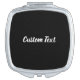 This black compact mirror has white display text. You can edit the cursive script to show a custom message such as the recipient's name.