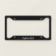 This black license plate frame has white text. You can customize it by entering your personalized message. The text is a cursive script.