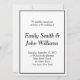Plain white envelopes are included with paper invitations and will come to fit the invitation size you select. If you don’t need the envelopes, you may choose to not receive them by selecting the dropdown below "Envelopes" and choosing "None." If you’d like to have a design on your envelopes, you can browse all of these available envelopes to find the design that complements your Simple Black And White Elegant Wedding Invitation.