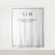 Simple wedding photo booth backdrop featuring a modern yet elegant design with your two letter monogram along with your names and date surrounded by a thin border. All text is in black over a white background and the text and background colors may be changed to any colors you wish. A chic and stylish design that is great for a minimalist couple. This custom backdrop is great for taking pictures with guests at your wedding reception.
