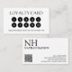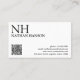Modern QR Code loyalty card featuring a simple and minimal black and white design with your monogram in a bold font along with your business name in the upper left corner. Your contact info is in the lower right corner.