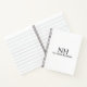 Modern business notebook featuring a simple and minimal black and white design with your monogram in a bold font along with your name on the front. The back has your contact info.