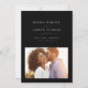 With elegant but simple modern typography, this one-photo save the date is the perfect way to announce your engagement and upcoming wedding. The classic black and white color works with every style of wedding from formal to casual. The back features a simple stripe. The color can be changed by clicking "customize further."