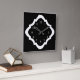 A simple and classic clock in black and white. The modern quatrefoil tile pattern frame in white around the numbers on a black background will add a stylish look to any room decor.