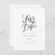 MInimalist elegant black and white save the date announcement postcard with love heart. Add your special announcement details in a classic text.