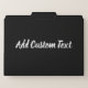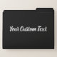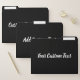 These black file folders have white display text on the front. You can edit the text to show a personalized messsage. The display text is an elegant white script.