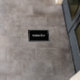 This black floor decal has text in white script. The text can be edited or deleted.