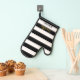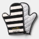 Simple Black and White Stripes Gold Script Name Oven Mitt
