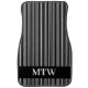 You can change the white initials to show the correct monogram. The car floor mats are black with vertical, white stripes. The stripes vary in width.